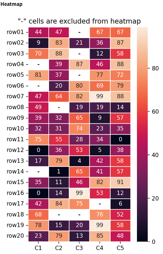 # ヒートマップ用("-" を NaN にして数値化)と、